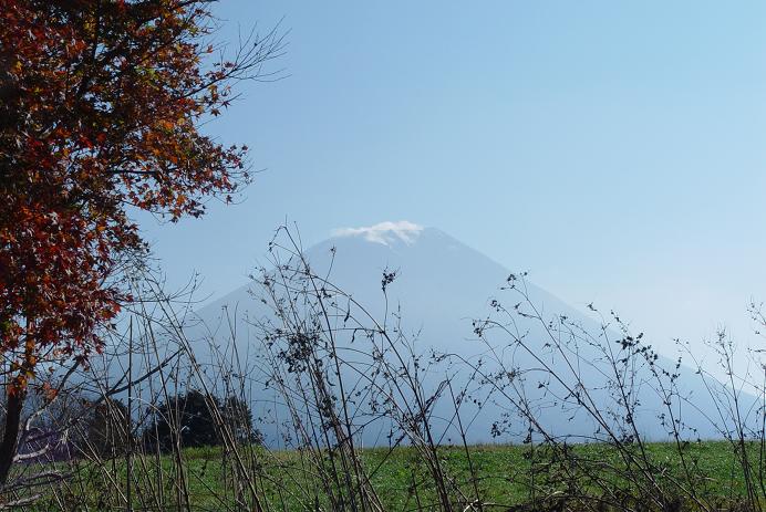 楽しみだった富士山の景色は、歩く間、左側にずっと現れていて、シャッターチャンスを狙うも、薄曇と頂上の雲に